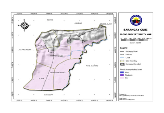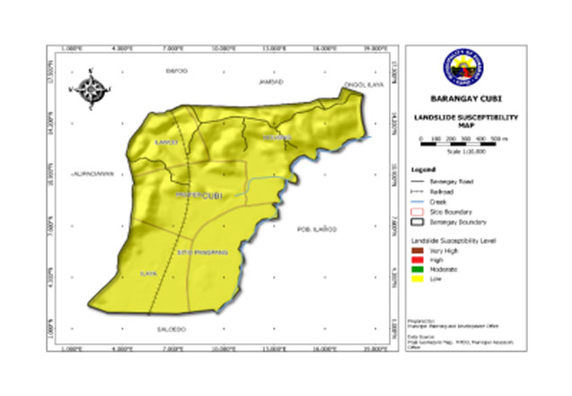 The entire area of the barangay is categorized as low susceptibility level for rain-induced landslide and susceptible to high subsidence.