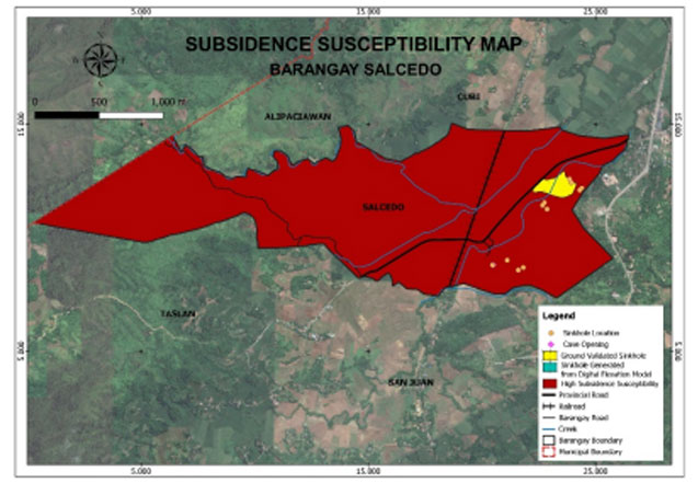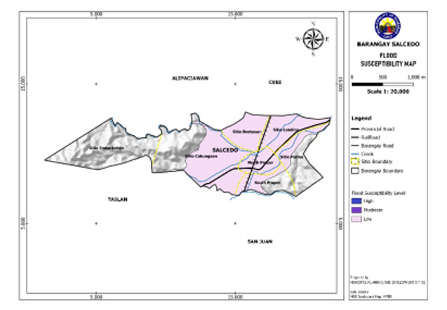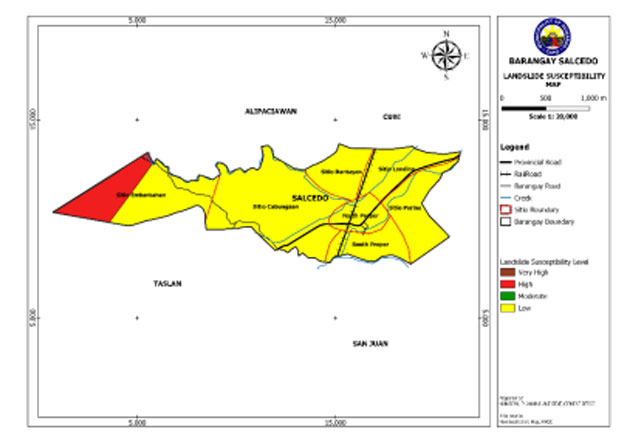 Salcedo is exposed to 3 types of hazards: rain-induced flooding with low susceptibility levels, rain-induced landslides with 3 susceptibility levels: high, moderate, and low, and KARST Subsidence.